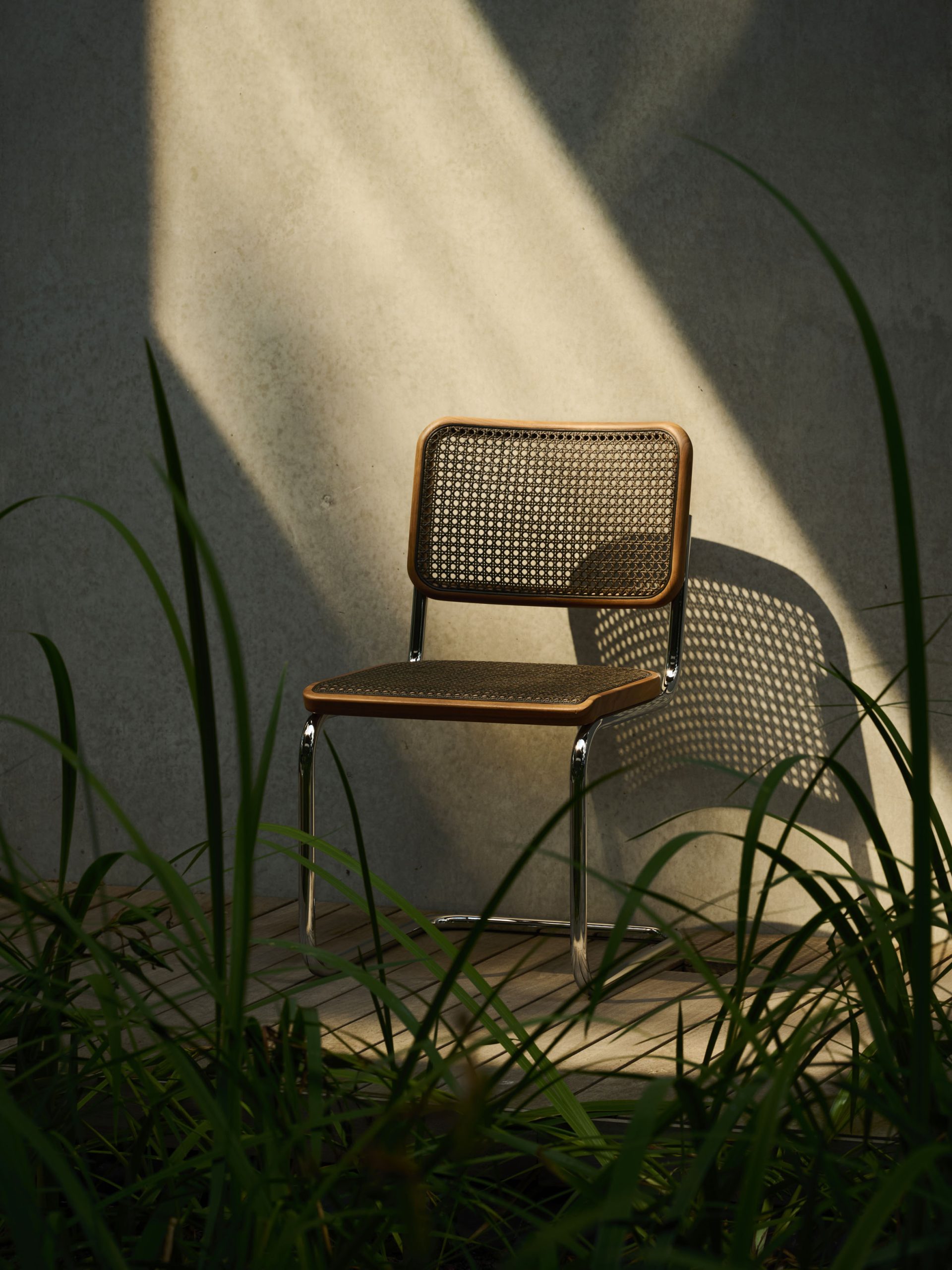 Gevlochten riet is gemaakt van een grondstof die telkens weer aangroeit. En het gaat lang mee. In de meubelindustrie heeft het zijn nut in de loop der eeuwen dan ook bewezen. Dat gevlochten riet nog altijd mooi gevonden wordt, komt mede door het decoratieve open patroon, dat het meubelstuk een zekere transparantie geeft. Daarom worden de zittingen en rugleuningen van veel Thonet stoelen nog altijd voorzien van dit natuurlijke materiaal. Rotan is een tropische slingerplant die in het regenwoud van Zuidoost Azië groeit. Hij vormt lange stengels die als lianen in de bomen omhoog klimmen. Om vlechtdraden te maken, wordt de buitenste laag van de geoogste rotanstengels afgeschild en in repen gesneden, die vervolgens aan elkaar worden gelijmd tot een eindeloos lange vlechtdraad. De rotan voor het vlechtwerk wordt vooral uit Indonesië geïmporteerd. Tegenwoordig worden Thonet-meubels bespannen met industrieel geproduceerd vlechtwerk. Dit machinale vlechtwerk heeft echter alleen horizontale en verticale draden. De diagonaal kruisende draden die zo kenmerkend zijn voor het Weense vlechtwerk worden nog altijd met de hand ingevlochten. Bij het bespannen van een zitting of rugleuning wordt het vlechtwerk met een hamer in de omringende groef geslagen en met houtlijm gefixeerd.