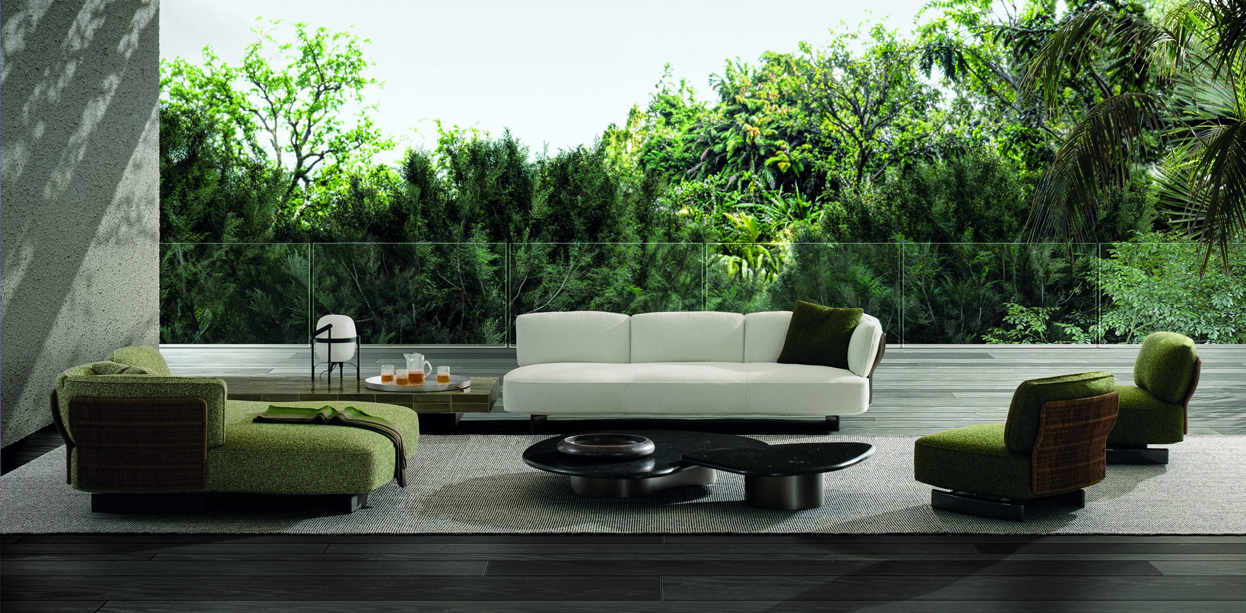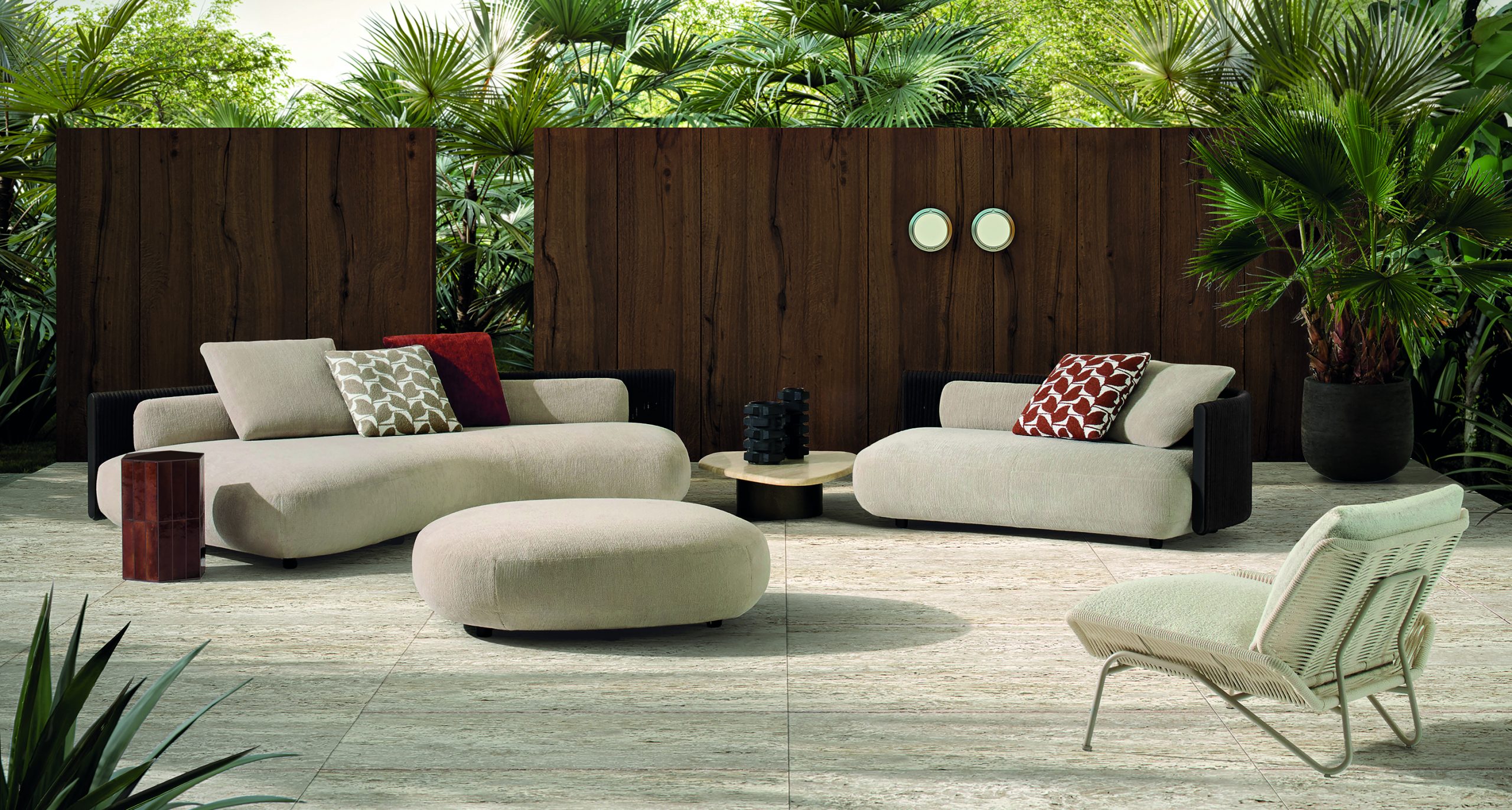 De Outdoor Collection van de Italiaanse fabrikant is namelijk ontworpen met het idee dat dezelfde stijl, vormtaal en manier van leven buiten net zo beleefd en gevoeld moet kunnen worden als binnen. Een naadloze overgang, aldus Minotti, waar “culturele invloeden en tijdloze elegantie van modernisme zich ontvouwt in een natuurlijke verbinding tussen binnen en buiten.” Marcio Kogan/ Studio MK27, Hannes Peer en Nedo zijn verantwoordelijk voor de ontwerpen. “Een harmonie tussen de elegantie van een woonruimte en het spontane karakter van de natuur.” Italianen zijn wereldkampioen in dit soort bewoordingen.