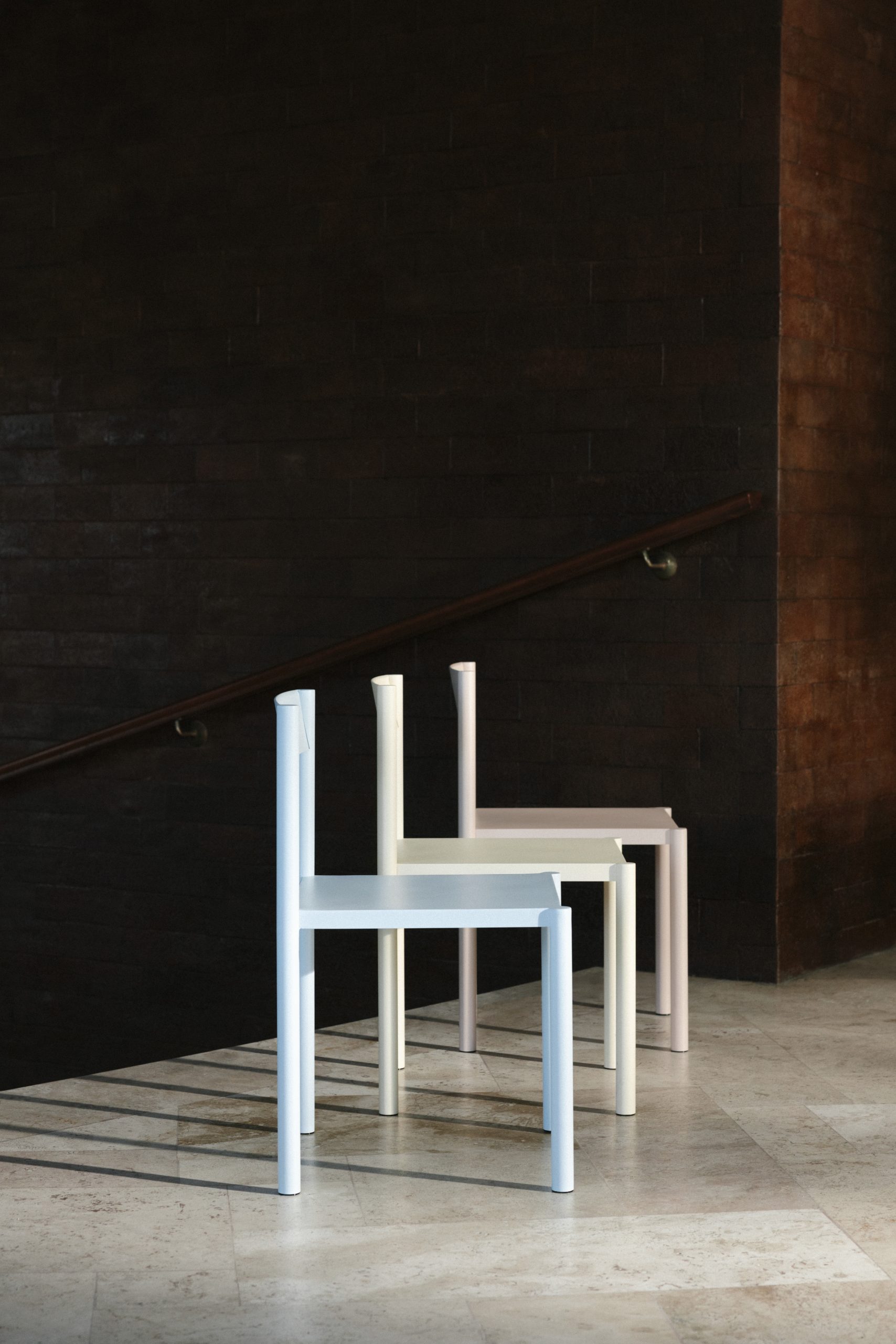 Elvira is een moderne interpretatie van de traditionele houten stoel met zitting uit gevlochten stro. De brede, comfortabele zitting is in lijn met de basis zonder overhangende delen. De cilindrische voorpoten zijn solide en vormen een vlekkeloze connectie met de stoel. De achterpoten rijzen omhoog en vormen een frame uit 1 stuk waar de horizontale rugleuning op rust, met een subtiele welving die het lichaam verwelkomt. Het kleuren palet van de tafel en stoel laat zich raden aan de hand van de namen: Clay, Paper, Liquorice en Silk, naast de pasteltinten Butter, Sky en Peach plus de donkere kleuren Leaf, Fire en Ocean. Deze kleuren voorkomen nostalgie (een besmette term in artistieke kringen, terwijl iedereen momenteel teruggrijpt op het verleden) en zorgen ervoor dat ze in iedere ruimte en context passen.