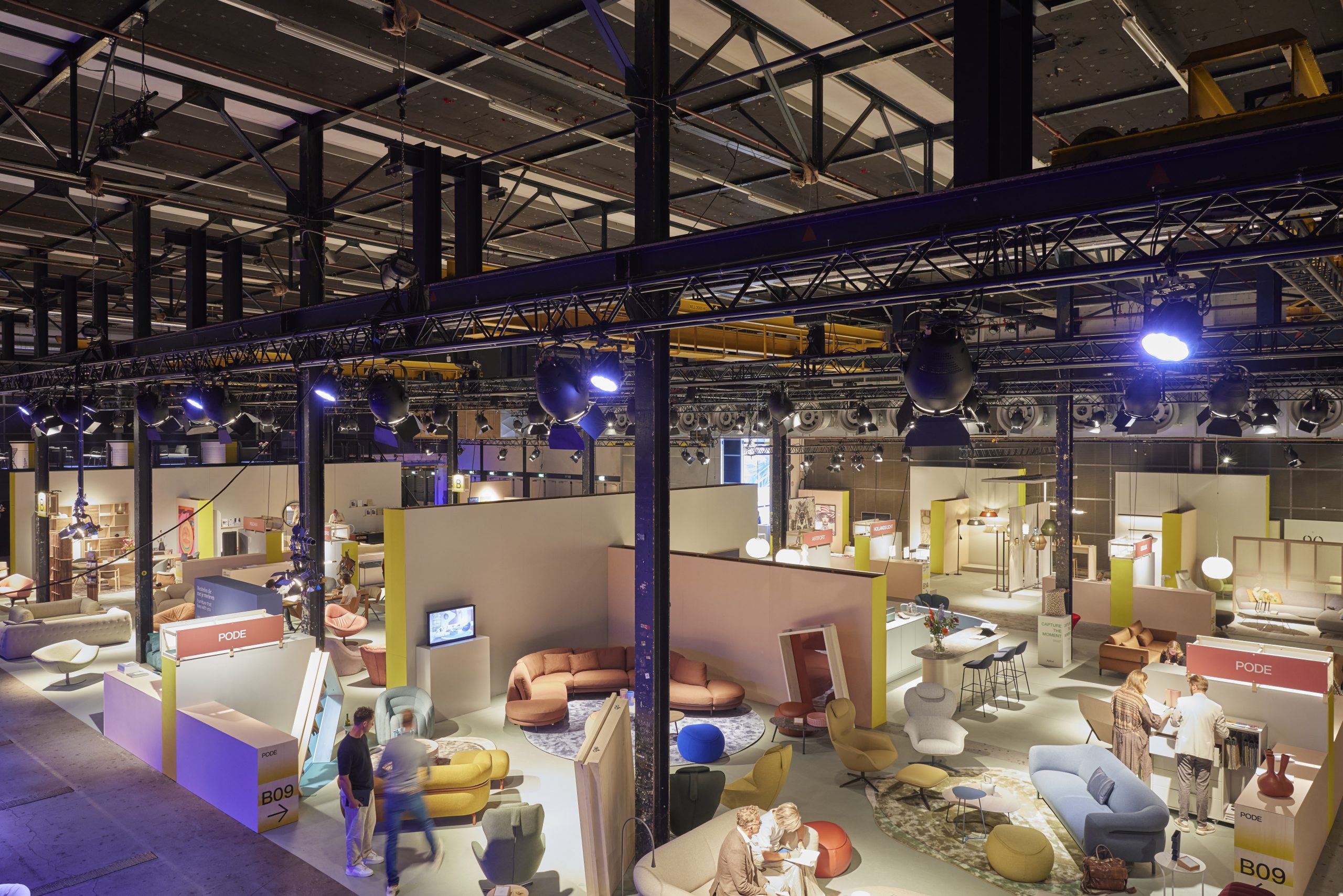 “Een beurs voelt vaak als een doolhof van witte wanden, maar hier kiezen we bewust voor één gezamenlijke identiteit,” aldus Studio La Bolleur. “Het ruimtelijk ontwerp is een groot, zacht gebaar: gordijnen met een subtiel kleurverloop die die voor een zachte landing zorgen in dit iconische industriële gebouw. Van afstand ontstaat een speels patroon dat karakter geeft; van dichtbij blijft er ruimte voor iedere presentatie. Zo creëren we een omgeving waarin de creatieve industrie zich welkom voelt, elkaar ontmoet en merken zich als één geheel kunnen presenteren.”