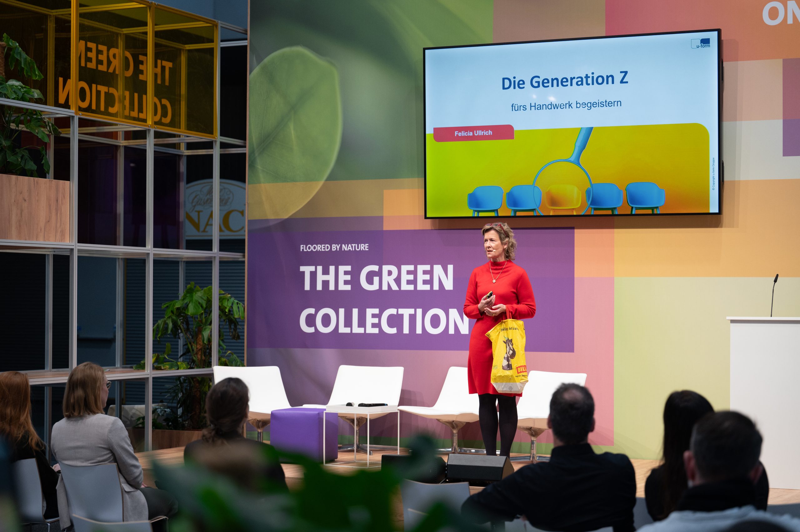 Er is een Innovation Area waar bezoekers niet alleen vernieuwingen kunnen zien en voelen maar er ook interactief mee aan de slag kunnen. Dit wordt verzorgd door het Mittelstand Digital Zentrum Handwerk, een instantie die de digitale omgeving wil integreren bij Duitse detaillisten. Want daar valt nog een wereld te winnen, zeker wanneer het gaat om aansluiting vinden bij jongere consumenten en hun belevingswereld. Het Zentrum heeft 8 vestigingen in Duitsland en helpt ook met e-learning, cybersecurity en het promoten van technische beroepen. : We moeten interactief dingen laten zien om bezoekers te trekken en langer vast te houden op een beurs”, aldus Dr. Martina Schneller van het instituut. “We hebben voor deze editie bijvoorbeel Smart Floors opgesteld met een bewegingssensor, praktisch wanneer ouderen vallen of als inbraakalarm. Er zijn schilderrobots, juist omdat er zo’n tekort aan opgeleide schilders is. Er is een AI programma voor de analyse van de lucht in een binnenklimaat: welke stoffen kunnen we detecteren? Er zijn VR brillen met een ruimteconfigurator voor het kiezen van patronen en kleuren bij de inrichting. En er is een chatbot die consumenten adviseert en helpt bij het zelf configureren van een interieur. Er is ook een gebrek aan verkoopadviseurs en mensen willen steeds sneller een passend totaaladvies. Technologie kan daarbij helpen. De chatbot is er inmiddels ook als docent bij de e-learning modules en als juridisch adviseur bij geschillen met consumenten.”