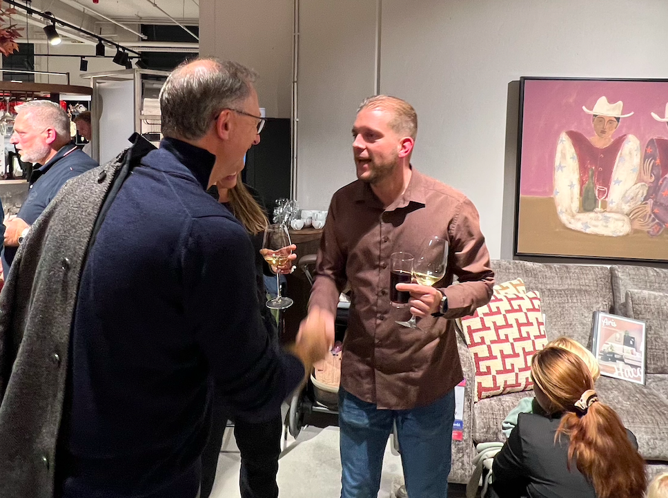 De trotse ondernemers van de nieuwe winkel zijn bestuurslid Jelle Lancée en Desmond Oudhuizen. De laatste heeft een bijzonder inspirerend verhaal: negen jaar geleden begon hij onderaan de ladder bij Haco als magazijnmedewerker en werkte zich stap voor stap omhoog. Inmiddels is hij, naast een jonge vader van drie kinderen, ondernemer in Barendrecht. “Trots” is het woord dat de avond meerdere keren viel, en bij Oudhuizen kreeg het extra betekenis. Met zijn winkel zet hij volgens velen de standaard voor wat Haco “3.0” mag worden genoemd: een moderne, toekomstgerichte woonwinkel die traditie en innovatie weet te verbinden.