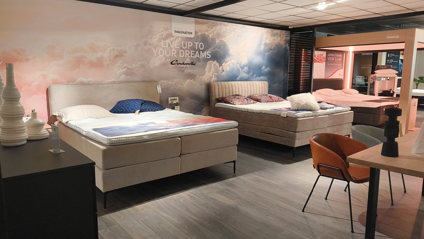 “Formeel zijn wij nog steeds een groothandel,” legt Alain uit, “maar met onze showroom en expertise leveren we rechtstreeks aan de consument. Dat model vormt de basis van onze huidige positionering. Deze directe relatie met onze klanten zonder tussenpersonen geeft ons een voorsprong in de wijze waarop advies en service worden vormgegeven, in de hele winkel en dus ook op de slaapafdeling.”