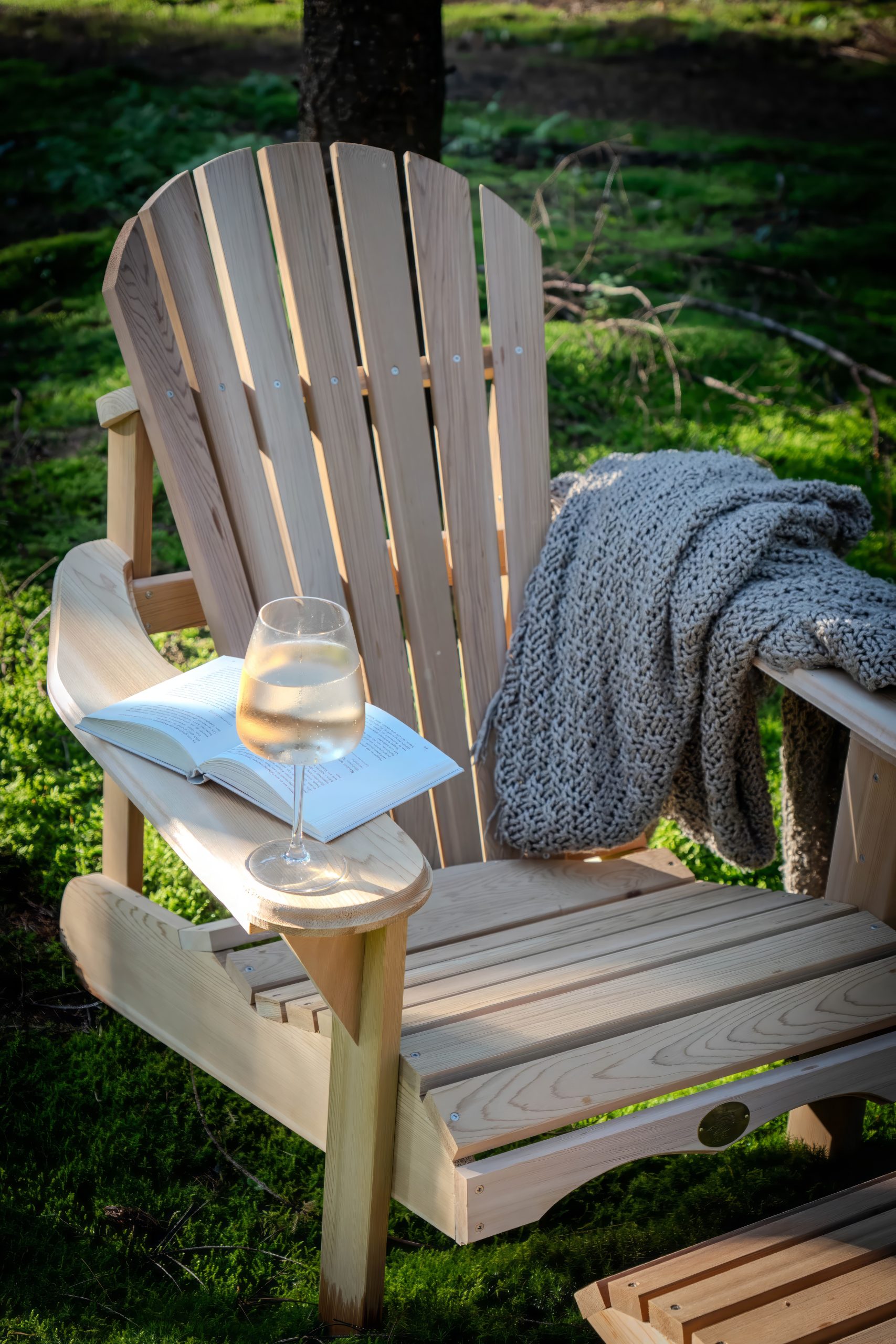 Wat de Original Bear Chair uniek maakt, is het materiaal: Canadees cederhout (Thuja plicata). Deze houtsoort staat bekend om zijn natuurlijke duurzaamheid, lichte gewicht en weerbestendige eigenschappen. Ideaal dus voor tuinmeubelen die alle seizoenen buiten kunnen blijven staan. De robuuste stoel weegt amper 10 kg en is daardoor eenvoudig te verplaatsen. Op de brede armleuningen (18 cm) kun je eenvoudig een drankje of een boek kwijt.