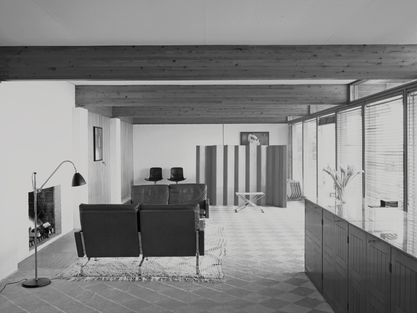 Kjærholm en zijn vrouw Hanne, een architect, bouwden hun familiehuis in 1961 in Rungsted Kyst, aan de kust ten noorden van Kopenhagen. Poul Kjærholm ontwierp het meubilair precies afgestemd op de ruimte, met name de grote, open kamer die zich over de volledige lengte van het huis uitstrekte en uitkeek op zee. Het vrijstaande scherm speelde een essentiële rol bij het afbakenen van de woon- en eetgedeelten. De hoogte van 140 cm werd bewust gekozen om een gevoel van afzondering te creëren tijdens het zitten aan tafel, terwijl staand een volledig overzicht op de ruimte behouden bleef. De lange nerfstructuur van Oregon Pine versterkte de verticaliteit van het scherm en ontwikkelt in de loop der tijd een warm patina.