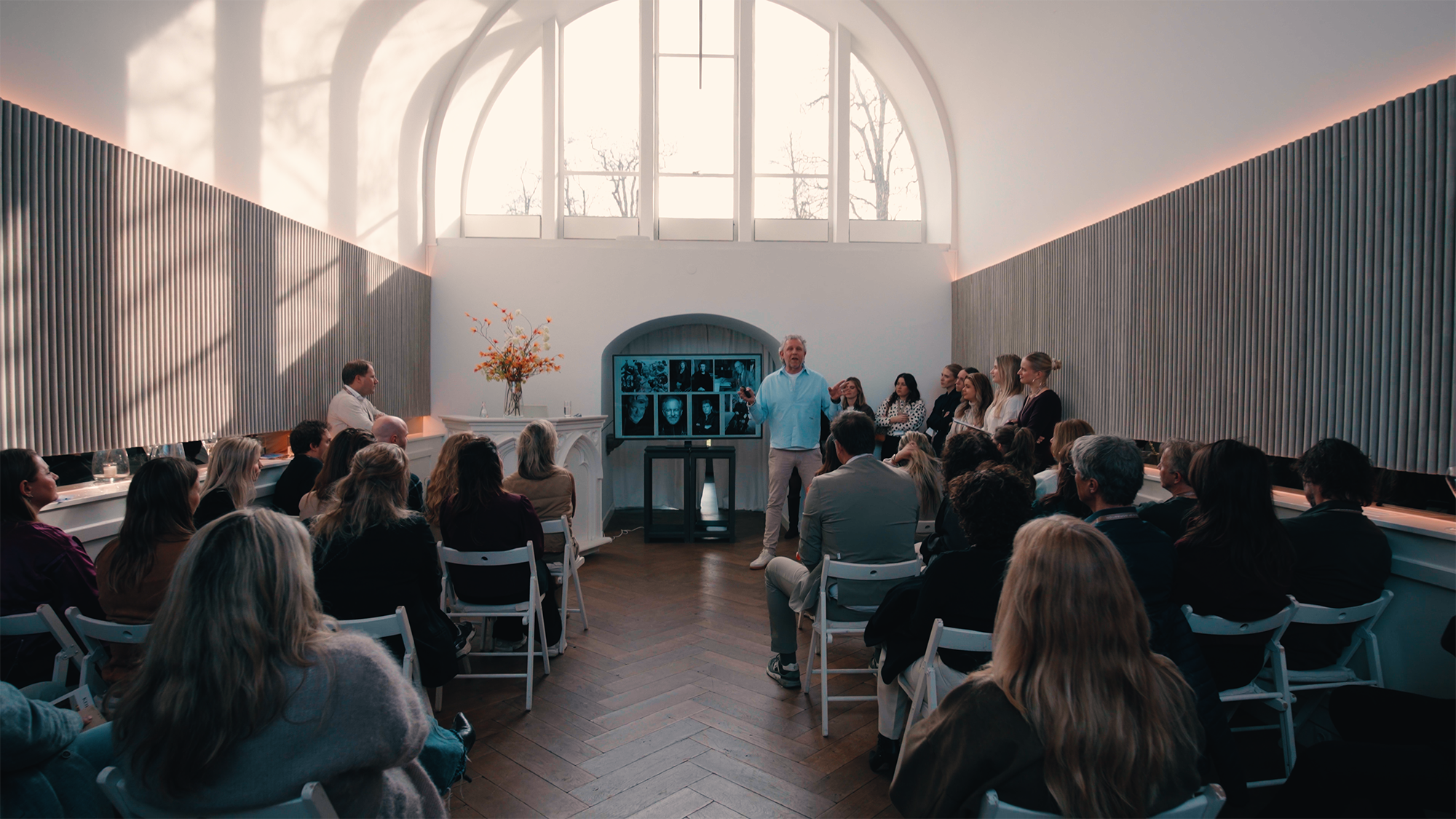Bezoekers konden niet alleen kennismaken met de exposanten tijdens hun product demonstraties, maar ook deelnemen aan een inhoudelijk programma dat het evenement een extra belevingslaag gaf. Op donderdag was de monumentale kapel, waar de AI-workshop werd gegeven, eigenlijk net te klein voor alle geïnteresseerden. Het enthousiaste publiek ontdekte de vele mogelijkheden en tools die er op dit moment zijn. Ook de lezingen van ontwerper Hans Kuijten en akoestiek-expert Rick Kamzol werden goed bezocht. Tussen de lezingen en de exposantenbezoeken door werd de innerlijke mens verzorgd door Herman den Blijker, die met zijn team heerlijke bites bereidde in de serre.