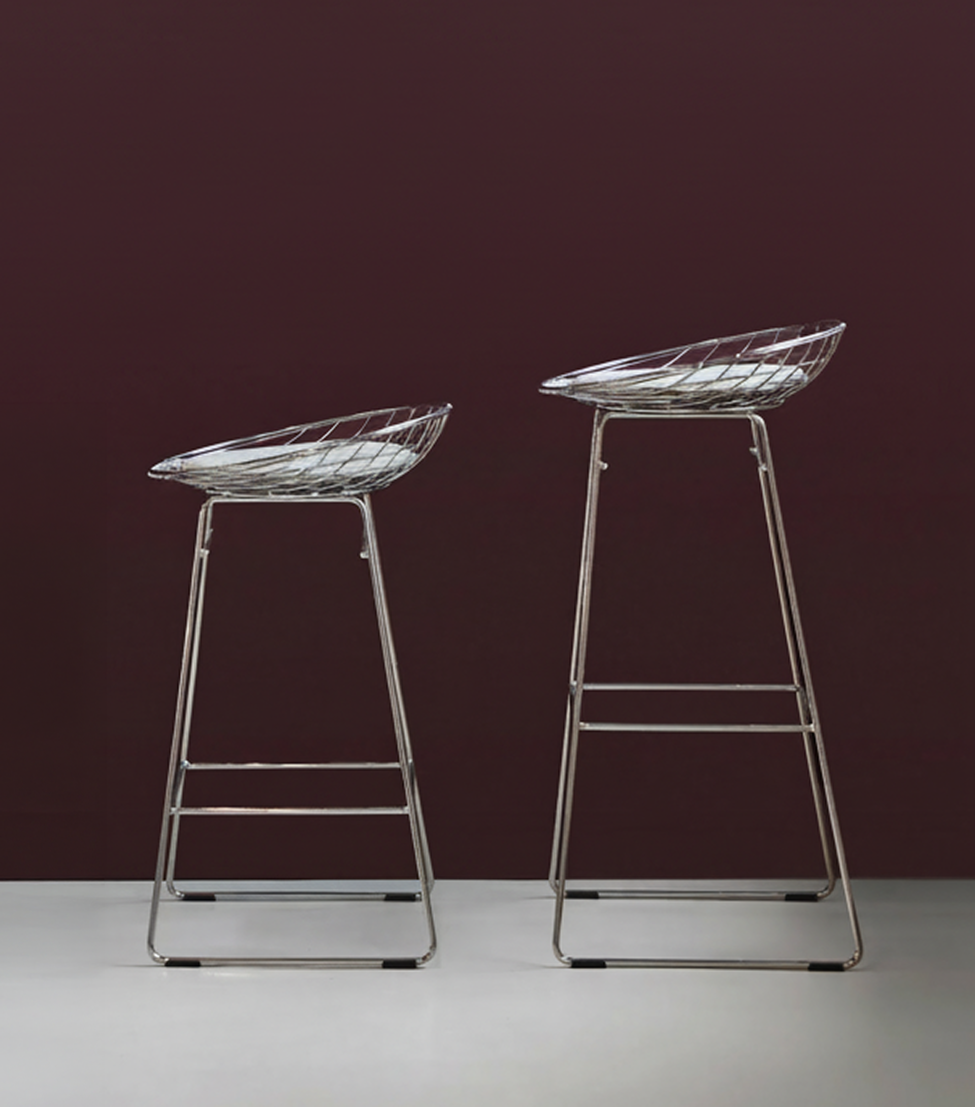 Het elegante en minimalistische frame met open structuur geeft transparantie en ruimtelijkheid aan het interieur. De ergonomisch gebogen zitting biedt verrassend veel comfort. De gehele serie, bestaande uit een stoel, kruk en barkruk, is verkrijgbaar in zwart of chroom en kan voorzien worden van een op maat gemaakt zitkussen. Er is een keuze uit stof of leer en in diverse kleuren, voor een stijlvolle en uitnodigende uitstraling.