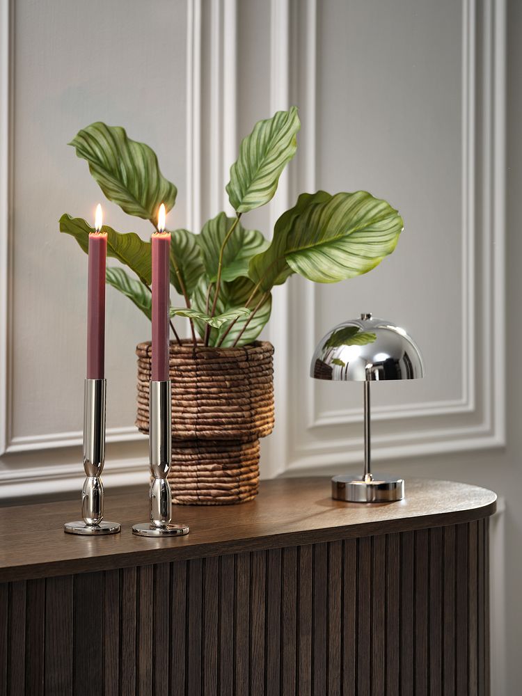 Deze kleuren komen ook terug in artikelen zoals de kaarsen HOLME in een trendy zeshoekige vorm, de plantenpot LUCAS en het opvouwbare bijzettafeltje SERUP met omkeerbaar blad. Het omkeerbare element zien we ook in textiel zoals het dekbedovertrek NIKOLINE en de gewatteerde plaid LAVENDEL met retro bloemenprints – een belangrijke trend voor de lente. Met materialen zoals staal en metaal brengt Renewing een industriële sfeer in huis met items zoals de chromen kandelaars ADRIAN en het decoratieve dienblad THYGE. De reflecterende oppervlakken zorgen voor een opvallend contrast in artikelen zoals de poef DAVINDE, die elke ruimte een speelse touch geeft.