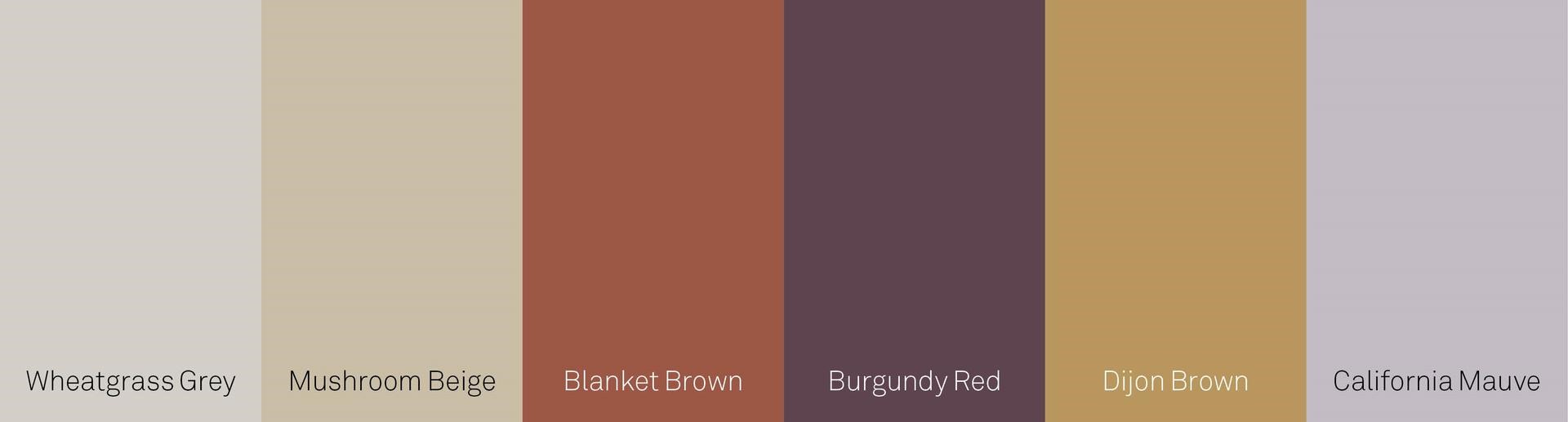 In licht van de nieuwe trendkleur van 2024, introduceert Karwei ook een breder trendpalet, met kleuren die aansluiten op de trendkleur, en dat een verfrissende aanvulling is op de seventies interieur trend. Al deze kleuren zijn veelzijdig en makkelijk met California Mauve te combineren. De terra tinten uit het palet – van dieprood en paars tot oker en zandkleuren – nemen je mee langs canyons, woestijnen, en landschappen.  Ook zitten er lichtere tinten in het palet, zoals Mushroom Beige en Wheatgrass Grey, voor een serene eenheid waarbij je helemaal tot rust komt. Tot slot zorgen de krachtige aardtinten als Blanket Brown of Dijon Brown voor een levendige sfeer. Door California Mauve te combineren met deze tinten kun je van je huis een echt thuis maken, waarbij je een spannende balans creëert en tegelijkertijd meegenomen wordt naar een verscheidenheid aan verre plekken.