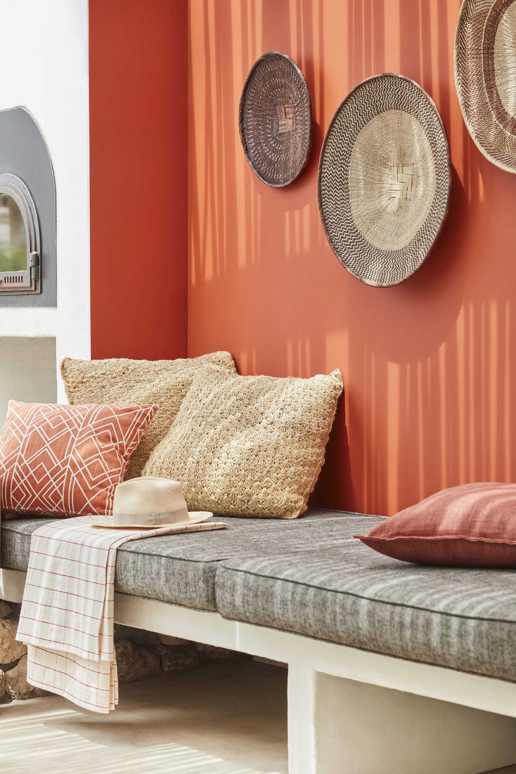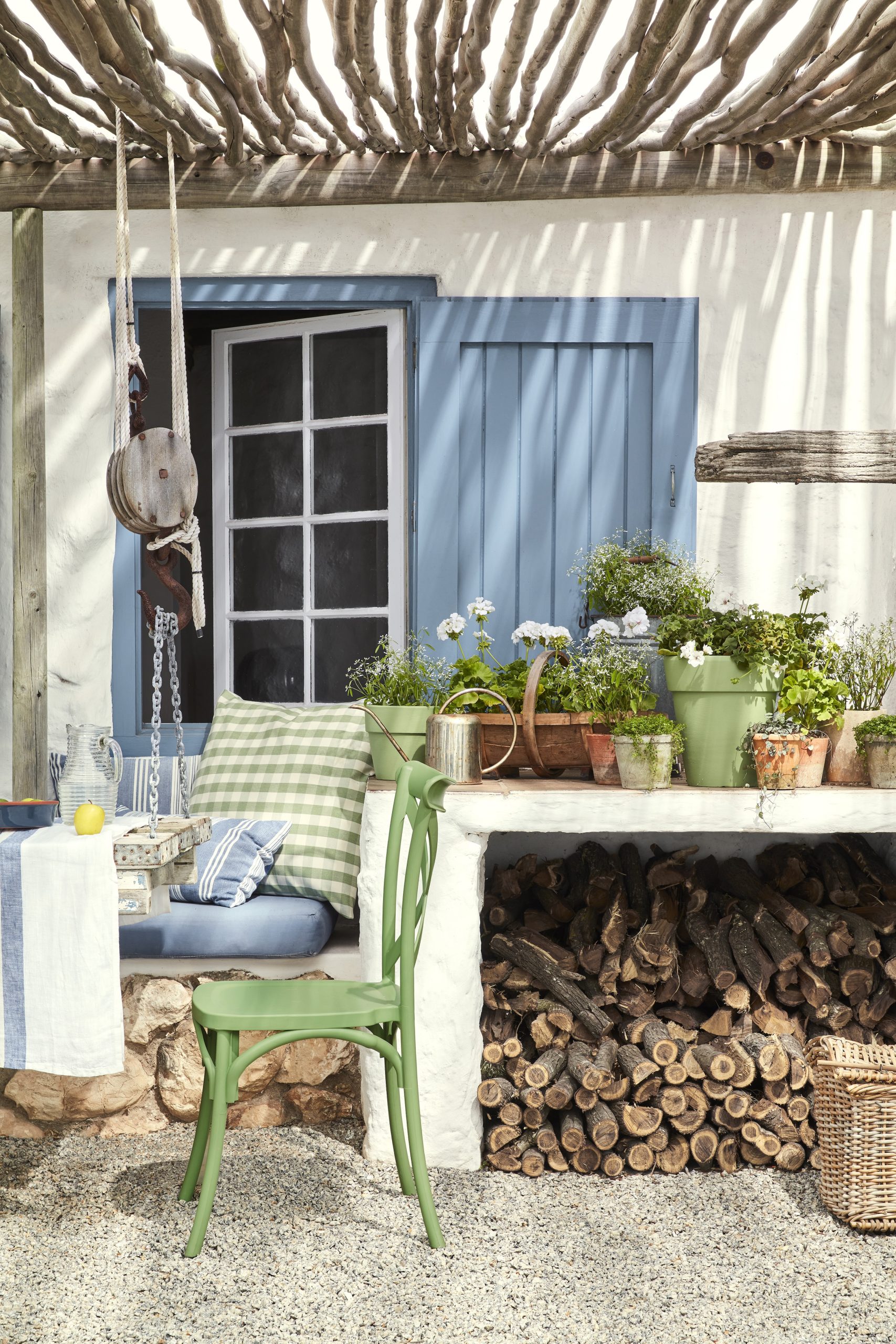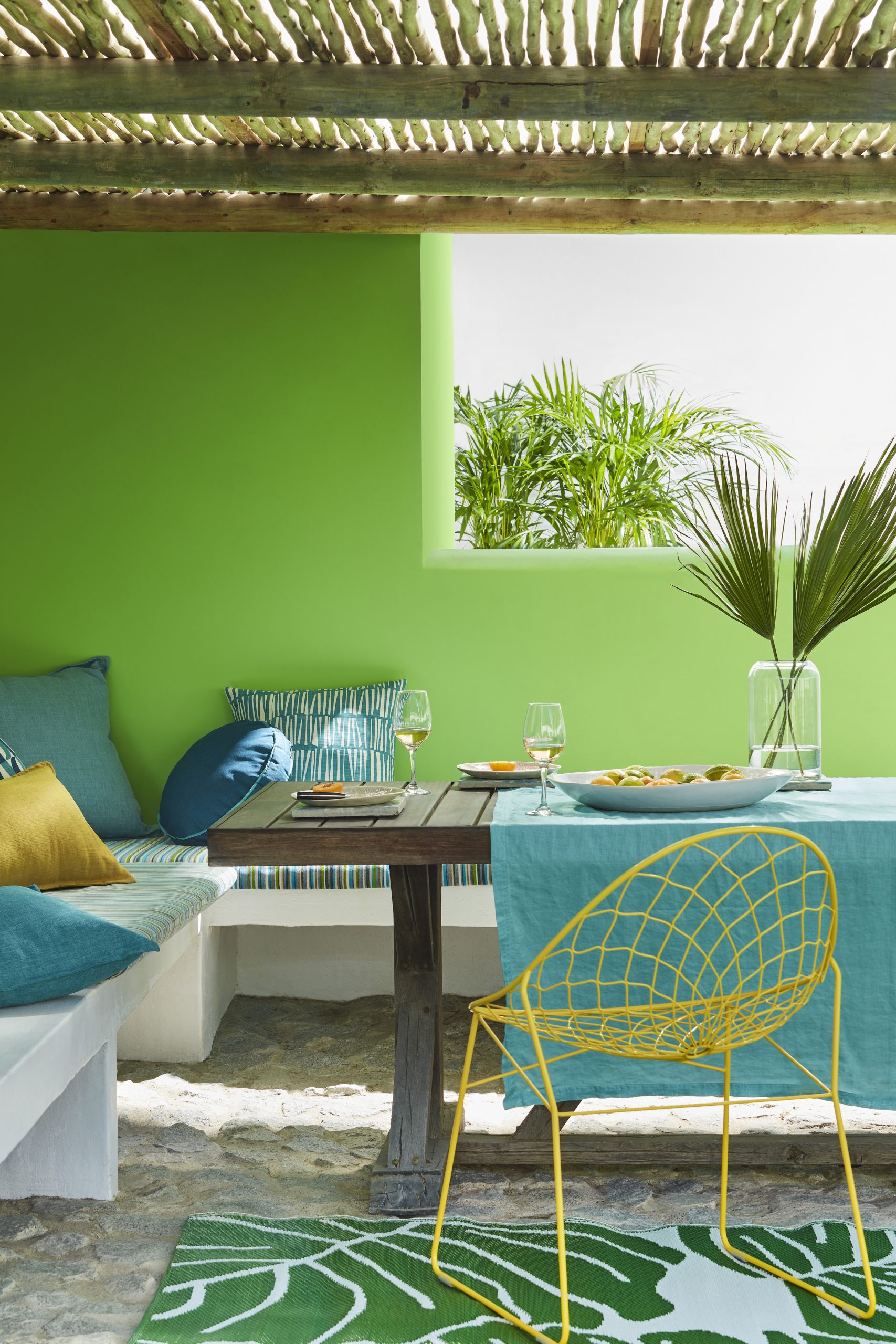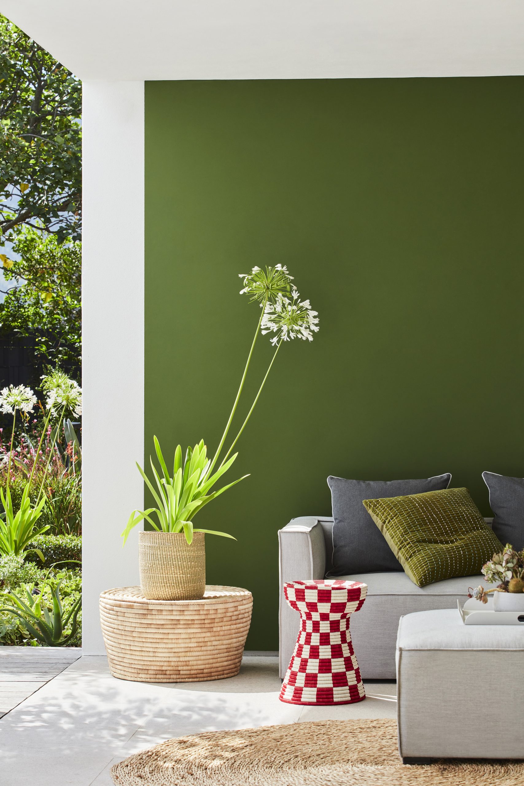 Buitenruimtes worden steeds vaker ingericht als volwaardige leefruimtes: van buitenkeukens met royale eettafels tot stijlvolle veranda’s en intieme hoekjes om te loungen en te ontspannen. Kleur speelt hierin een belangrijke rol. Om een prettige, persoonlijke sfeer te creëren wordt allang niet meer uitsluitend gekozen voor ingetogen tinten als crème en donkergroen. Door interieurkleuren ook buiten toe te passen op gevels, kozijnen, tuinmuren, meubels of bijgebouwen ontstaat een vloeiende overgang tussen binnen en buiten. “Het kleurvertrouwen dat we de afgelopen jaren in interieurs hebben gezien, verplaatst zich steeds nadrukkelijker naar buiten”, aldus Ruth Mottershead, Creative Director bij Little Greene. “Waar exterieurs vroeger vaak neutraal bleven, zien we nu dat mensen bewuster kiezen voor kleur om karakter en sfeer toe te voegen. Warme aardetinten zoals ‘Lute’ en ‘Serpentine’ en terra-nuances zoals ‘Heat’ (op de foto hieronder) worden steeds vaker gekozen om een persoonlijke, sfeervolle omgeving te creëren. Ook groentinten zoals ‘Jewel Beetle’ (helemaal onderaan op de foto) en ‘Hopper’ zijn populair, aangevuld met warme geeltinten zoals ‘Bassoon’ (helemaal bovenaan op de foto). Door dezelfde tinten binnen én buiten toe te passen, ontstaat een natuurlijke continuïteit die de leefruimte vergroot en verrijkt.”