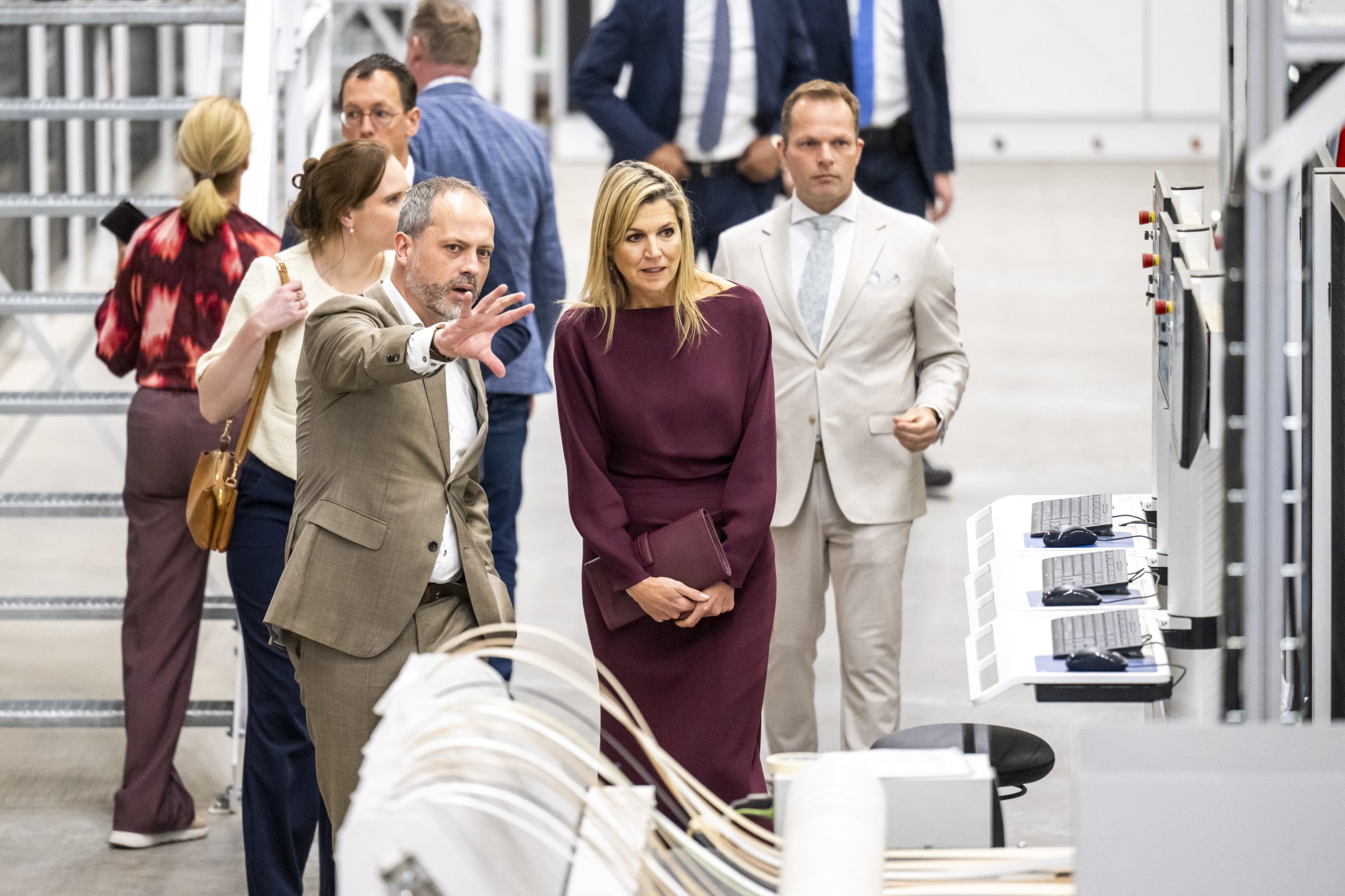 Hare Majesteit Koningin Máxima bracht woensdagmiddag 1 april een werkbezoek aan Vepa in Hoogeveen. Daar kreeg zij een concreet beeld van hoe circulair ondernemen er in de praktijk uitziet: tussen machines, materialen en medewerkers werd zichtbaar hoe ambities dagelijks worden vertaald naar tastbare oplossingen. Het bezoek maakte deel uit van haar programma met Circulair Groningen Drenthe, een netwerk van bijna tweehonderd organisaties die werken aan een circulaire economie in Noord-Nederland. Vepa was één van de twee bedrijven die geselecteerd werden om een rondleiding te verzorgen tijdens het werkbezoek. De foto’s zijn van Marcel J. de Jong.