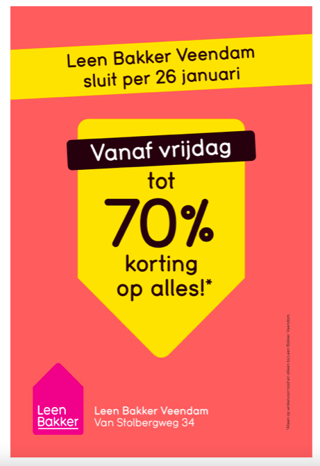 Niet alleen de vestiging in Zierikzee gaat deze maand dicht. Ook de zaken in Leek en Veendam houden ermee op. De winkels sluiten 25 januari en de uitverkoop is inmiddels begonnen. Op deze locaties komen nieuwe vestigingen van Jysk.