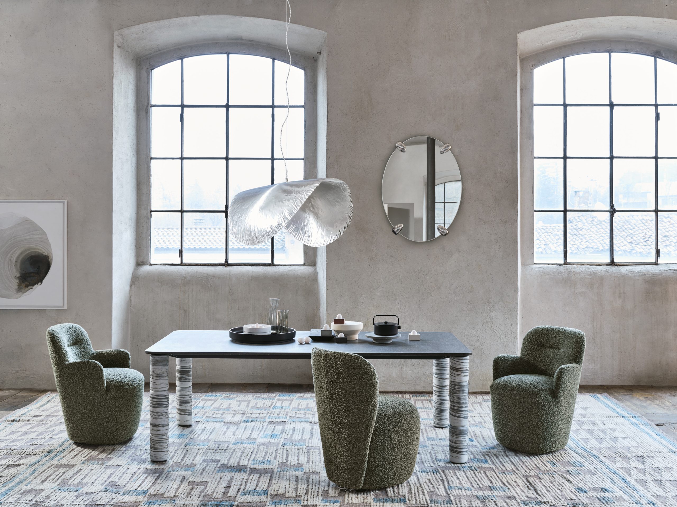 In aanvulling op deze stoelen zijn er de LOLL 225 en 226 kleine fauteuils met hun vollere, meer omarmende volume. De afgeronde optiek zonder randen zorgt voor een aanwezigheid in de eetkamer die bijdraagt aan een ongedwongen maar toch elegante sfeer in de ruimte.