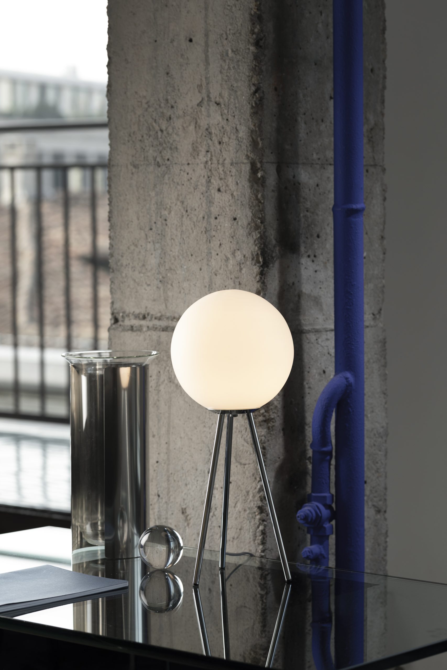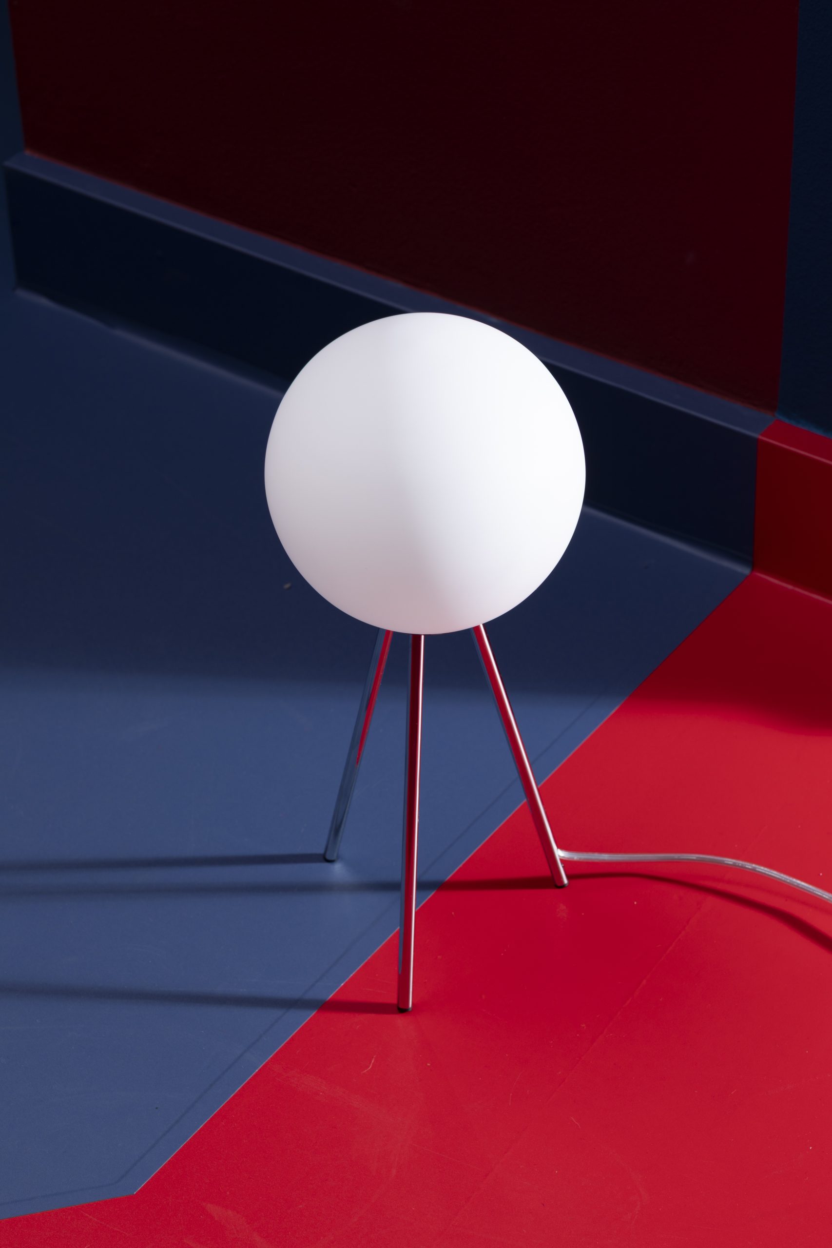 Hoewel het model in naam en vorm doet denken aan de Prima Signora van het Italiaanse verlichtingsmerk heeft de Signorina toch een eigen identiteit. Dit model is compact in de juiste verhoudingen en meer toegesneden op het moderne (kleinere) interieur. Een witte bol van geblazen glas rust op een driepoot die afgewerkt is in chroom waardoor deze lamp in balans oogt. De transparantie van het glas heeft een interactie met de rechtlijnigheid van de structuur waardoor een vorm ontstaat die een interieur verrijkt maar niet domineert, aldus het merk. Waarmee eens te meer wordt bewezen dat Italiaanse emoties zich slecht laten vertalen in onze taal van dominees en keiharde kooplieden.