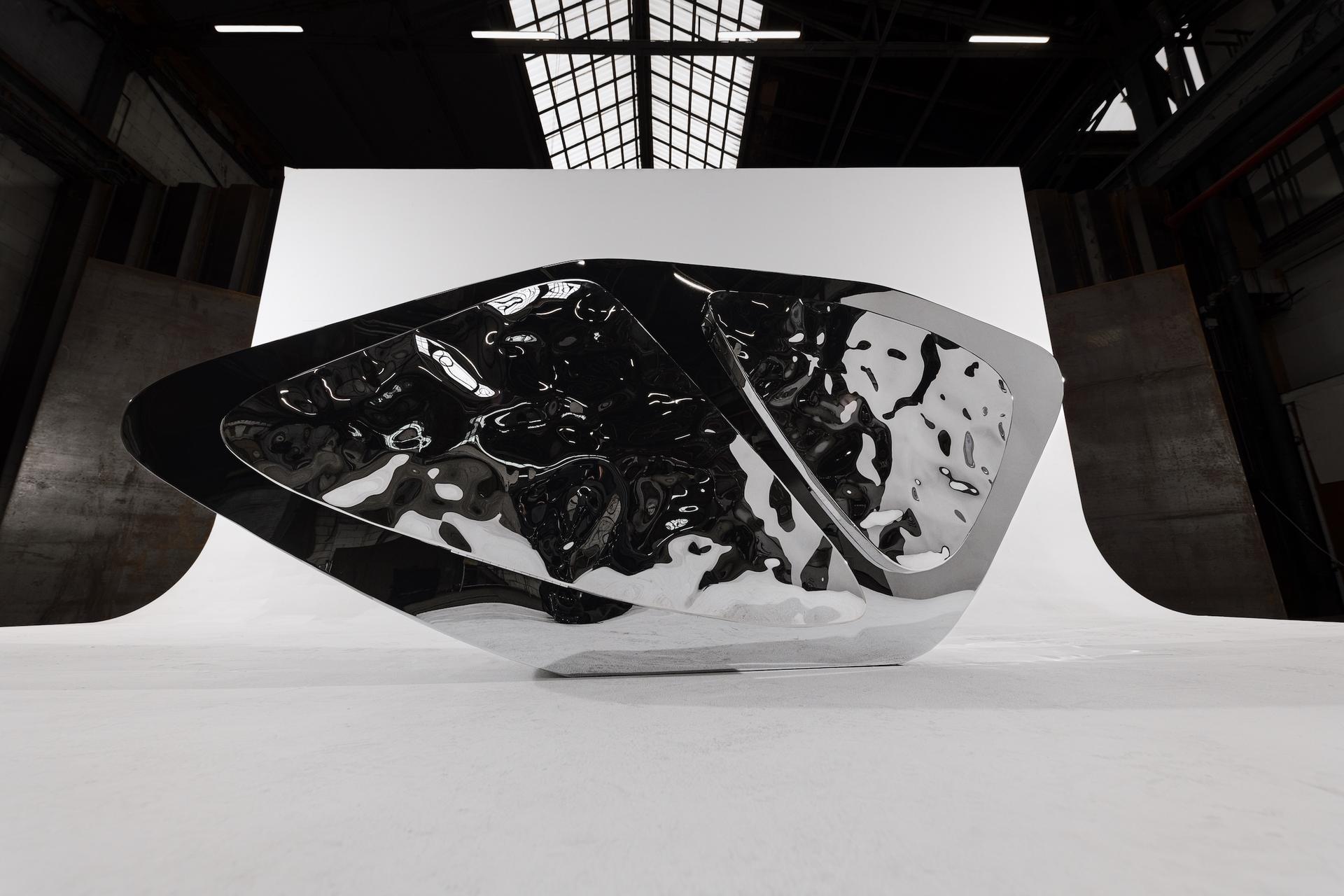 Het werk is gemaakt van verchroomd roestvast staal. Afmetingen: 200 × 100 × 35 cm. Pepe is aanwezig in Milaan tijdens de Salone del Mobile 2026. Volg zijn instagram voor updates.