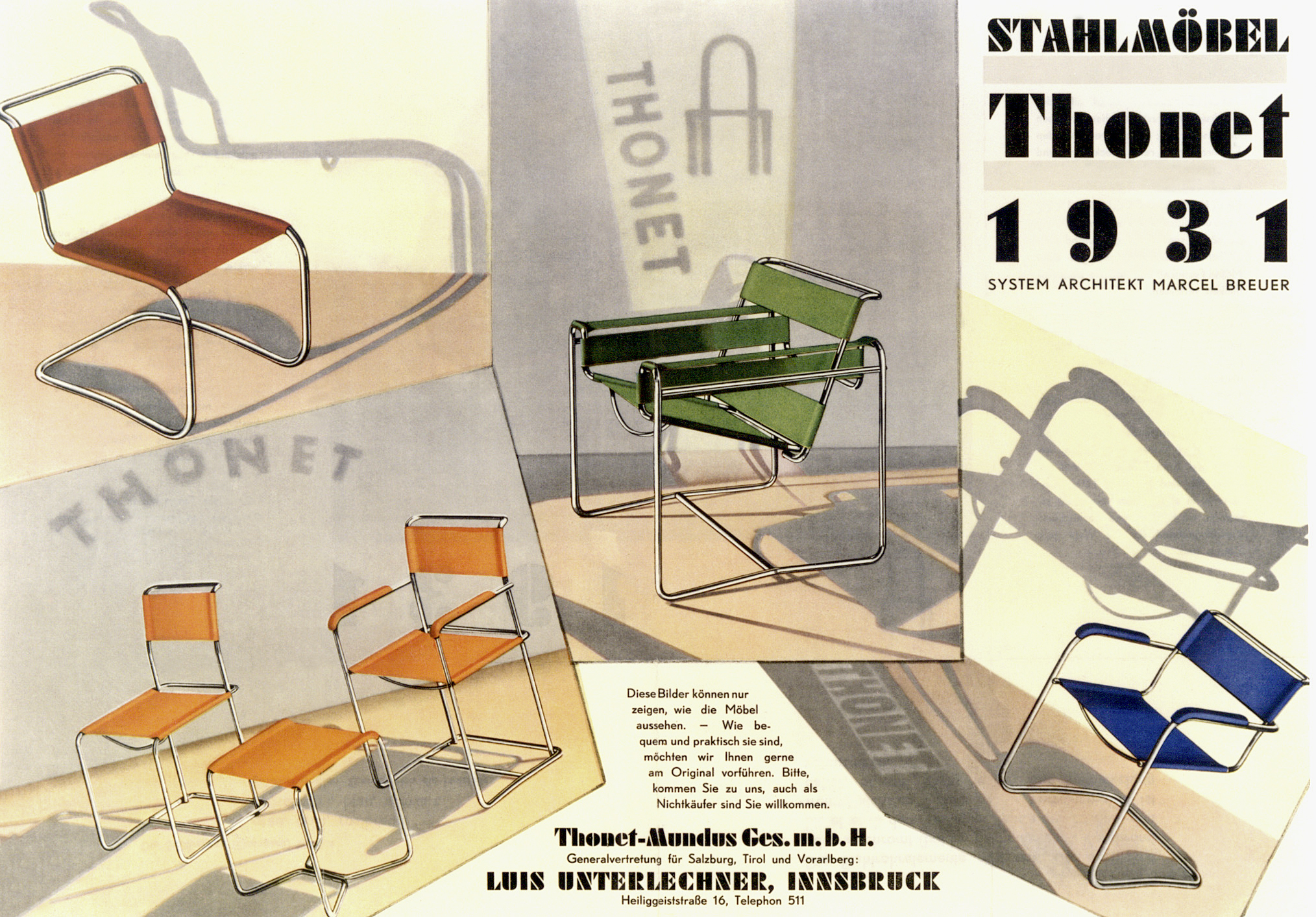 “Waarom vier poten gebruiken als twee ook voldoende is”, schreef kunstenaar Kurt Schwitters in 1927, toen hij de eerste sledestoelen uit de meubelgeschiedenis zag. De S 33 trok alle aandacht tijdens de tentoonstelling van de Deutscher Werkbund in 1927 in de Weißenhof-Siedlung in Stuttgart. De moderne meubilering gaf de ruimten waarin ze stond een verrassend pure, frisse en lichte uitstraling. Mart Stam was al vanaf 1925 aan het experimenteren met gasbuizen, die hij aanvankelijk met elleboogkoppelingen aan elkaar maakte. Later vulde hij de buizen met zand en verhitte ze op de plekken waar hij ze in een haakse bocht wilde buigen. Via dit proces vond Stam het principe uit van de cantilever stoel die niet langer op vier poten stond Die minimalistische constructie werd een belangrijke bouwsteen in het moderne meubeldesign. Aanvankelijk was het Stam niet te doen om het verende effect van de gebogen stalen buis, maar puur om de strakke vormgeving. Zijn sledestoel S 33 bleek echter meer dan alleen een interieurobject met zakelijke vormgeving; de stoel was onderdeel van een revolutionair totaalconcept van nieuwe architectuur en een nieuwe manier van wonen.