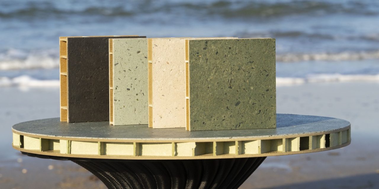 • Circulair tafelblad de hashtag#GREENGRIDZ SeaWood.